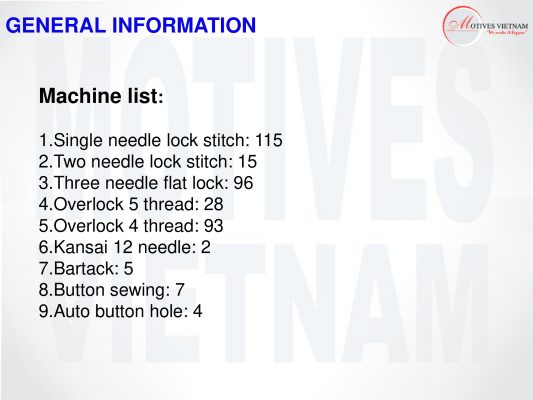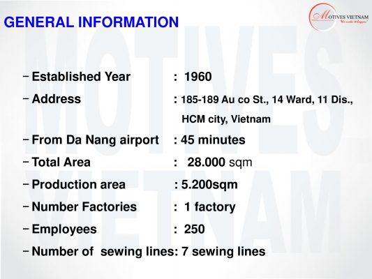 –          Kinh doanh tổng hợp: sản phẩm, vật tư, phụ tùng, hóa chất, thuốc nhuộm và nguyên vật liệu ngành dệt, nhuộm, may